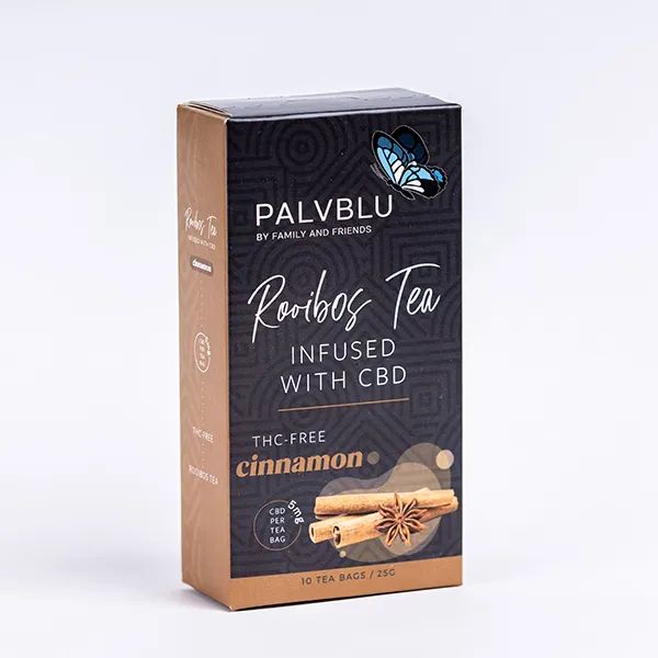 Palvblu’s Rooibos CBD Infused Tea with Cinnamon (10 pack) is a delightful blend that brings together the natural richness of Rooibos tea, the therapeutic benefits of CBD, and the warm, aromatic notes of cinnamon. Each pack includes 10 carefully crafted tea bags, offering a convenient and flavorful way to experience the calming effects of CBD with the added touch of cinnamon’s spice. This infusion is crafted to promote relaxation, reduce stress, and provide a soothing and aromatic tea-drinking experience. Indulge in the comforting combination of Rooibos, CBD, and Cinnamon with Palvblu’s convenient 10-pack offering.